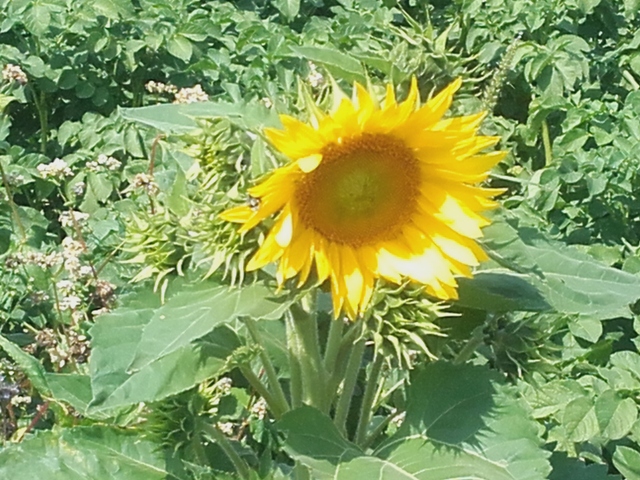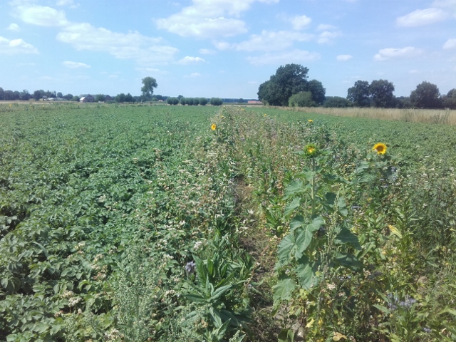 Wir haben in diesem Jahr erstmals nicht nur irgendwo am Rand, sondern mitten durch unsere Kartoffeln Blühstreifen angelegt. Und mehr möchte ich da gar nicht zu schreiben.