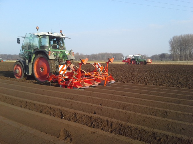 Im Vordergrund sehen Sie hier das Häufelgerät, welches die Dämme formt.