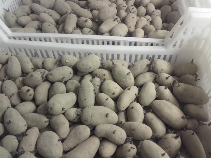 wir schon wenige Tage danach gleich die ersten vorgekeimten Kartoffeln in