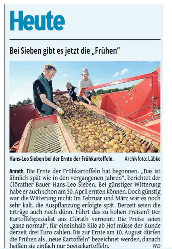 Unter dieser Rubrik werden wir Sie möglichst zeitnah informieren, was gerade auf unserem Kartoffelhof passiert, wo es Probleme gibt, z.B. mit dem Wetter und was es sonst neues gibt.