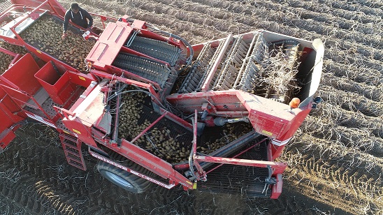 Im Hintergrund werden gerade die letzten Pflanzkartoffeln des Tages schonend