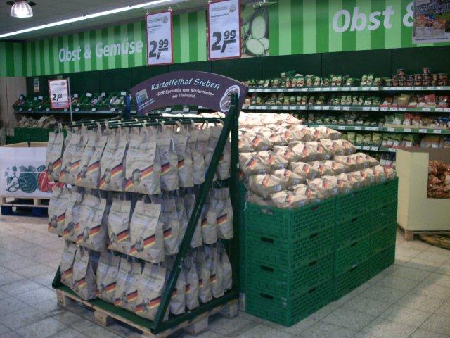 - In vielen real,- Märkten in der Umgebung unseres Hofes finden Sie inzwischen auch ein ansprechendes Sortiment unserer beliebten Knollen! Auch dort ist die markante "Kartoffelhof Sieben Tüte" nicht mehr wegzudenken und gewinnt immer mehr Fans.